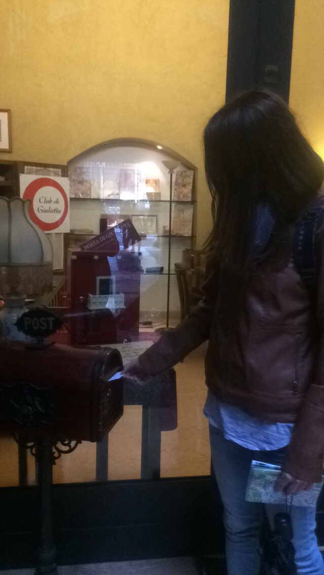 This day trip not only made me appreciate Italy more, but it also made me appreciate, even more so, how much Shakespeare has influenced English literature and Verona culture. There were Shakespeare bars, Romeo and Giulietta cafés, tourist shops superficially dedicated to the tale, and of course, the Guilietta Club. The Giulietta Club is a club that accepts and reads tons of letters written to Juliet from people all of the world. They read the letters and can respond in Italian, English, Spanish, Arabic, and so many more. Fortunately, Amanda and I stumbled across the club in a dark ally way while we were lost, and of course, we had to write Juliet a letter!