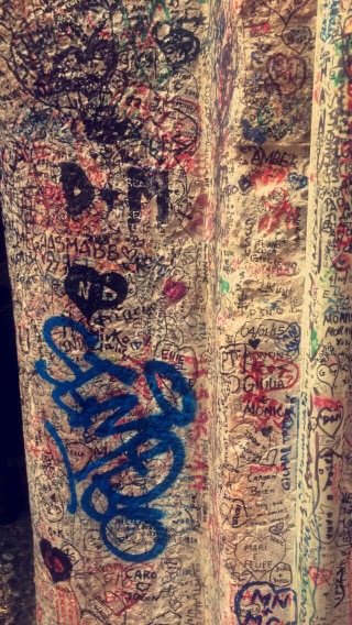 Everyone one by one walked up to the gold figure and rubbed her breast for good love luck. Couples locked their “amore eterno” locks on chain links and door knockers, people stuck gum and notes to the wall behind her statue, and Amanda and I gazed up at the balcony is disbelief and awe –an absolute beautiful moment despite the miserable weather.